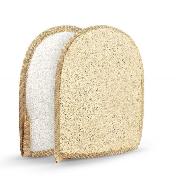 - LIGHTLY ABRASIVE natural loofah leaves your skin invigorated and more receptive to lotions and moisturizers. The reverse sides have soft terry cloth cotton fabric to remove body oils, dirt and debris.